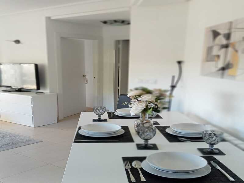 Calle Indico offers a spacious apartment with two bedrooms and a living room. Guests enjoy a south facing private terrace with garden views over the golf course, with a communal pool a stones throw away and a sun terrace. This apartment has all your home comforts including international cable TV. Exceptional Facilities: Hacienda Riquelme features a restaurant, bar, tennis court, and free WiFi. Additional amenities include a minimarket, outdoor play area, and barbecue facilities. Free on-site private parking is available. Dining Experience: The family-friendly restaurant serves British, Mediterranean, Spanish, and European cuisines in a traditional and modern ambience. Brunch, lunch, and dinner are available. Local Attractions: Region de Murcia International Airport is 26 km away. Nearby attractions include Las Colinas Golf Course (44 km) and Mar Menor Golf Resort (32 km). Highly rated by guests.