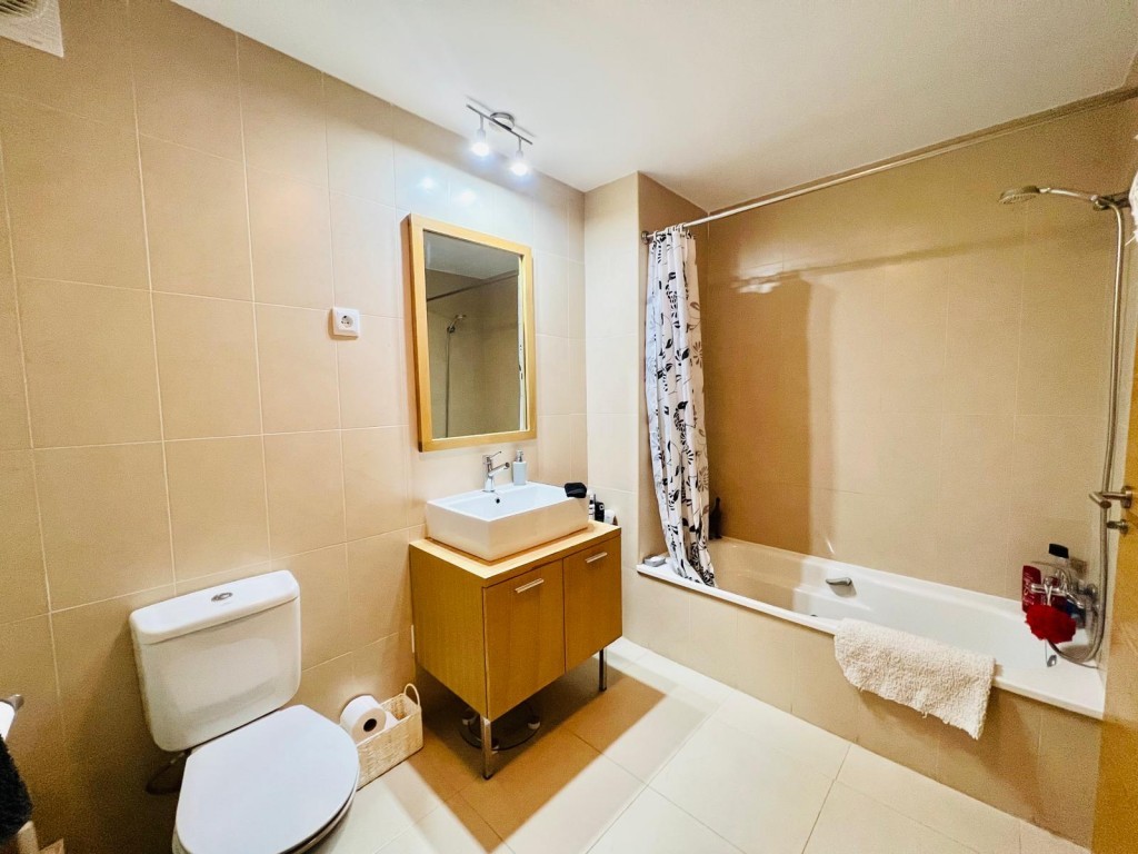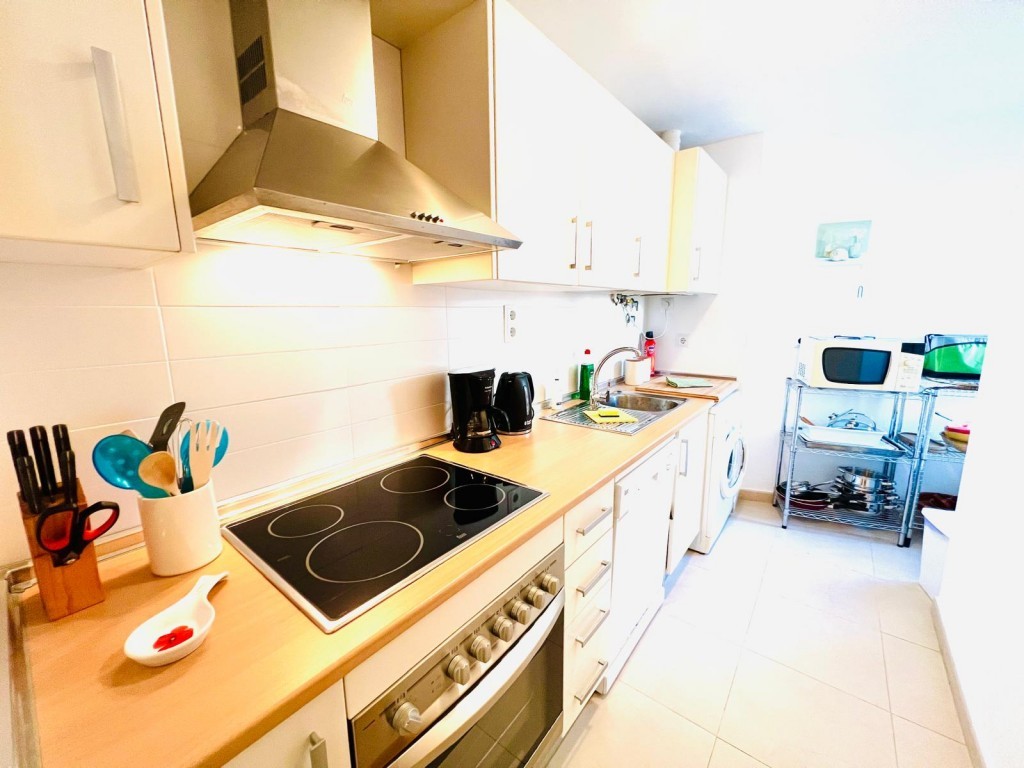 The apartment benefits from a fully fitted modern kitchen, free fibre internet, and international cable TV.